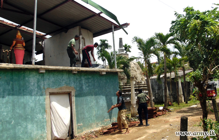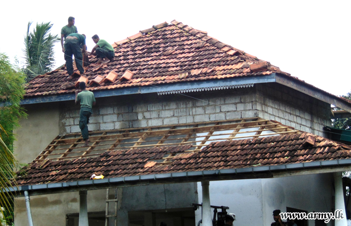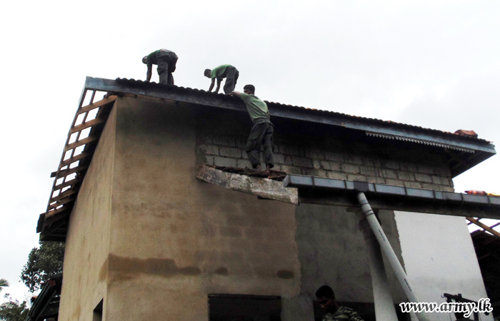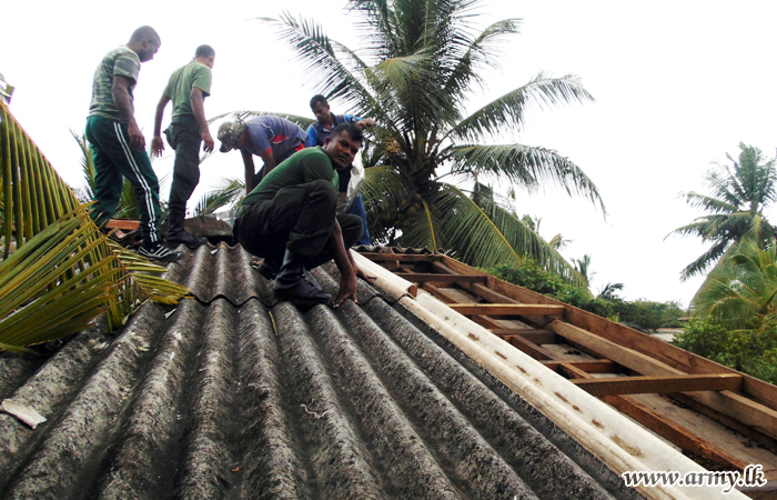 On Thursday (12), troops assisted affected civilians to re-thatch their roofs and clear compounds. Sri Lanka Light Infantry troops and Corps of Engineer Services troops volunteered their services.