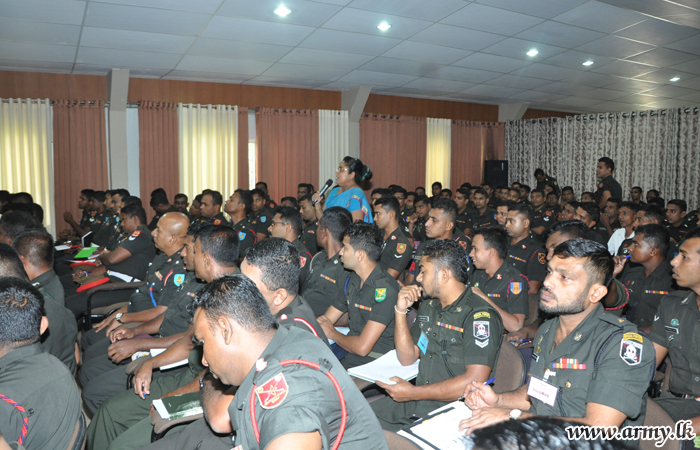 A group of 223 Army personnel participated in the awareness programme at the Army Headquarters and listened to Ms Chamari Geeganage, Senior Assistant Director of Sri Lanka Standards Institution. |