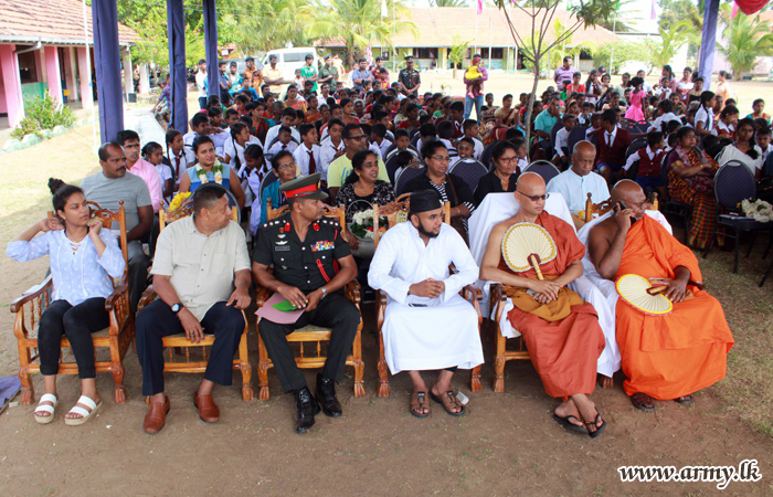 The event, initiated by Colonel Najeewa Edirisinghe, 571 Brigade Commander, following guidelines given by the General Officer Commanding, 57 Division, was attended by religious dignitaries, representatives of the donor organization, teachers, parents and students.