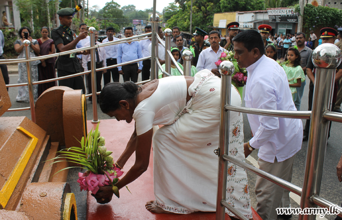 The commemorative ceremony organized by troops of the 11 Division under the Security Force Headquarters - Central, was attended by Colonel J Ranahewa, Colonel Admin & Quartering and gathering of Army Officers, Other Rankers, the mother of the War Hero, relations and civilians.