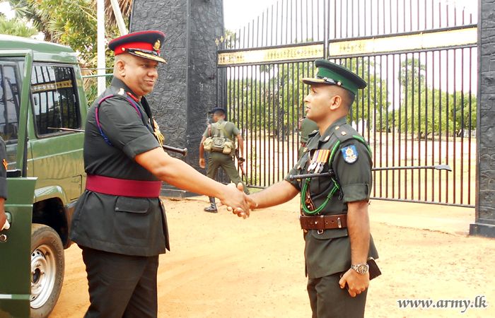The newly-appointed Officiating Brigade Commander on arrival at the 681 Brigade premises at Mullivaikkal, Mullaittivu was greeted to a Guard Turnout at the entrance in accordance with military formalities.