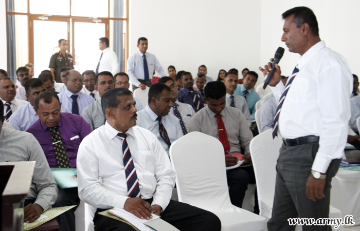 The programme discussed matters and responsibilities, pertaining to the roles of the Military and the Police for maintenance of peace and the reconciliation process. The two-day (11-12 July) arrangement took place at Thalsevana Holiday resort in Jaffna. The fourth session in the 1st phase of the programme was organized by the Security Force Headquarters – Jaffna.