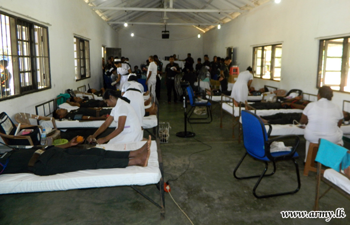 More than 150 Officers and Other Ranks of the 22 Division Headquarters on Wednesday (17) voluntarily came forward to donate blood for use of patients in the Trincomalee Hospital after a request to this effect was made to the 22 Division by Dr R.A Devarajah in charge of the Blood Blank in Trincomalee Hospital.