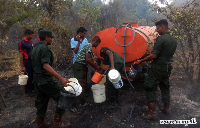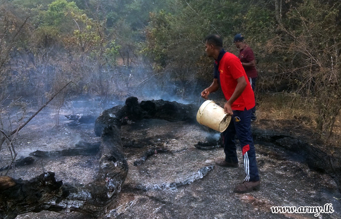 More than 50 Army troops of the Security Force Headquarters – East (SFHQ-E) on Thursday (19) took prompt action to arrest the spread of a wildfire that has erupted in the Somawathiya National Forest Reserve after the incident was brought to the notice of Major General Santhusitha Pananwala, Commander, Security Forces – East.
