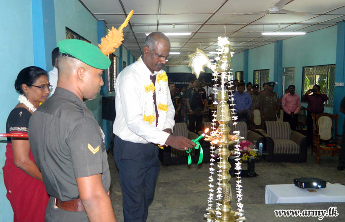 Colonel RKNC Jayawardena commander, 613 Brigade and Mr A. Logeshwaran, the Assistant Director (Advanced Level Education) and his Staff, Mr S. Rajarathnam, the principle of the School, along with the school teachers and the students were present during the inauguration. |