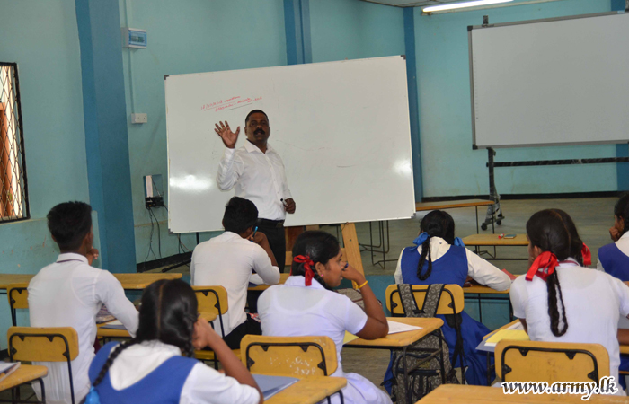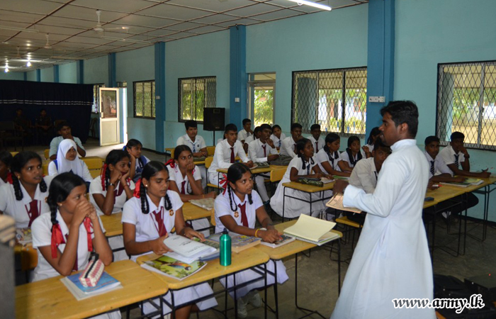 With a view to assisting students who are expected to appear for the forthcoming G.C.E A/L exam 2018 in August, troops of the 613 Brigade under the areas of the 61 Division and the SFHQ-Wanni launched a three-day seminar at M/ Periya Pandipirichchan Maha Vidyalaya during 18 - 20 July.