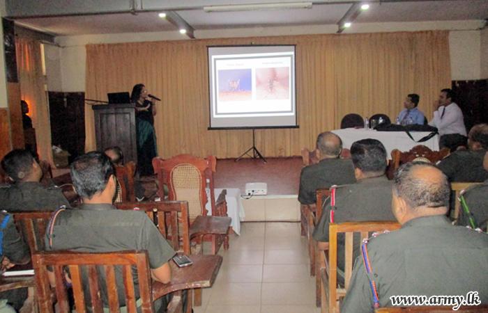 On the direction of Commander Security Force - West (SFHQ-West) Major General Sathyapriya Liyanage a preventing dengue prevention awareness programme was conducted at the 1st Sri Lanka Army Ordnance Corps auditorium at Panagoda on Wednesday (18).