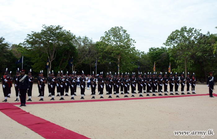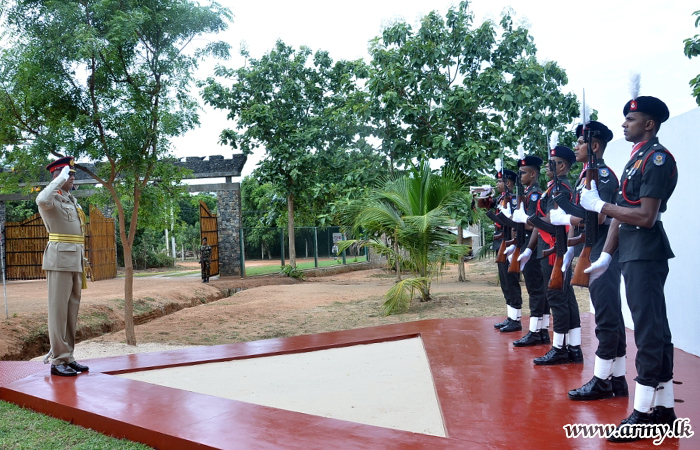 1st Sri Lanka Light Infantry troops of the 59 Division saluted in a parade after he entered the premises.
