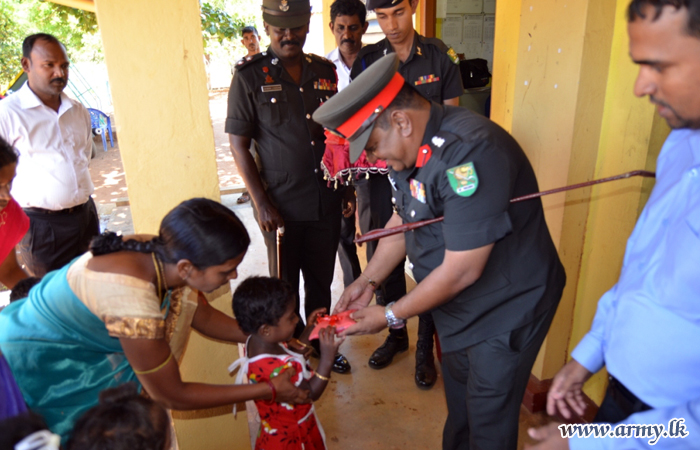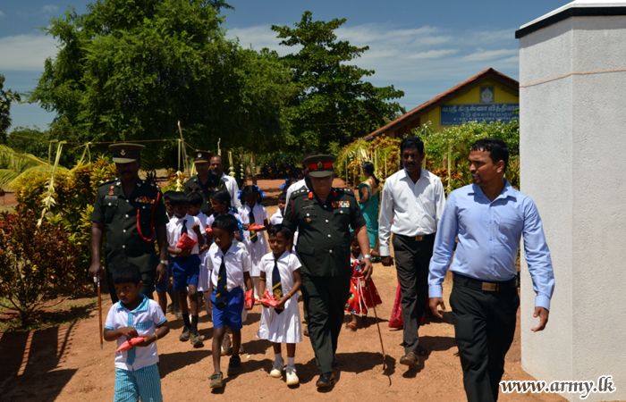 The opening ceremony of the new main gate, renovated pre-school and Children's Park took place during a ceremony, attended by Brigade Commander, 611 Brigade, Colonel Saman Liyanage, Divisional Educational Officer - Omanthai, Mr Sashi Kumar, Principal at Sri Krishna Vidyalaya and Mr Suthakaran and many others.