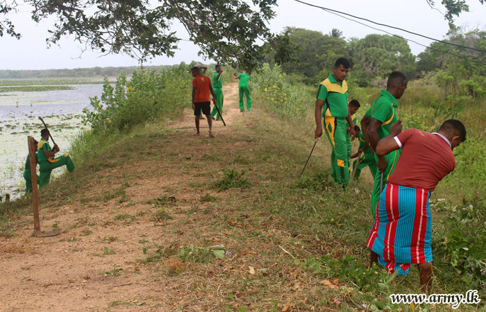 Around the same time, troops of 1 Gajaba Regiment conducted a Shramadana campaign to clean the Koddeikakddiyarkulam tank bund.