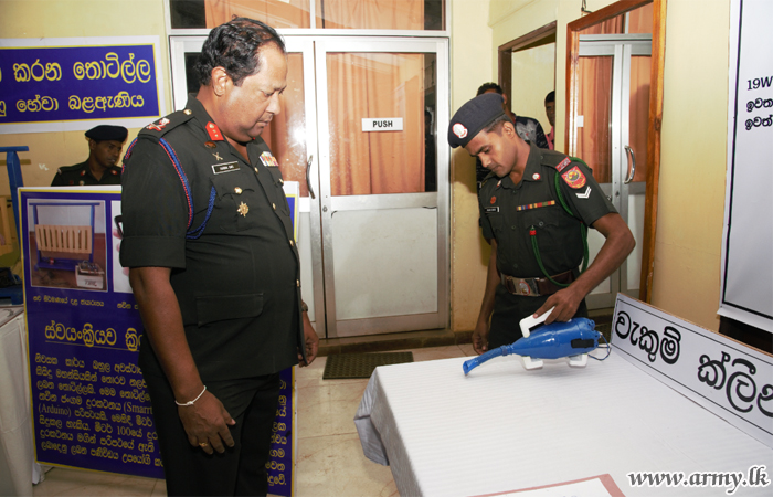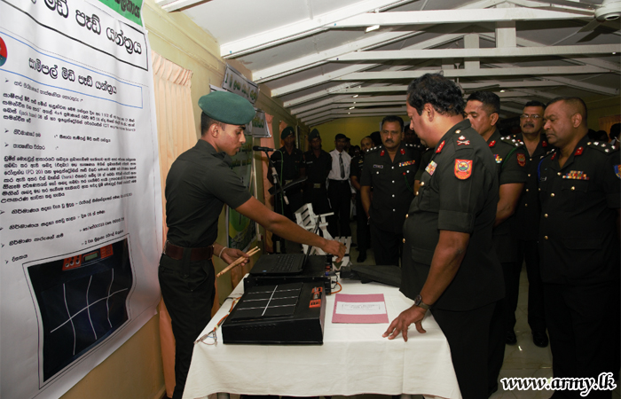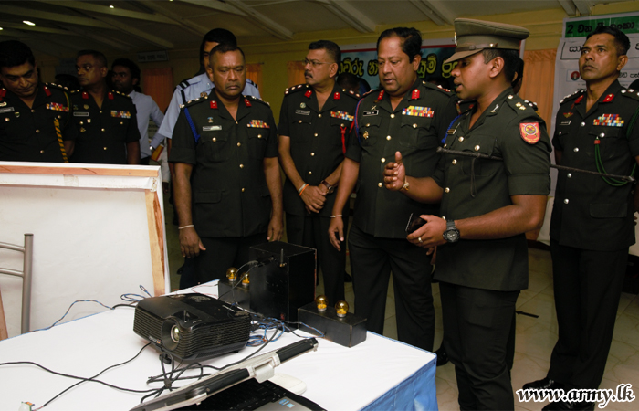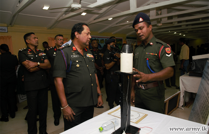 19 innovations and creative appliances, produced by the troops of the Security Forces - Central (SF-C) were on display at the Security Forces Headquarters - Central (SFHQ-C) lecture hall on Tuesday (24) as part of the ongoing motivation programme in search of inborn talents. Senior lecturers of Uva -Wellassa University, Prof D.K.D.D Jayasena and Dr E.D.N.S Abeyrathna evaluated the creativity of those projects and selected the best out of the best at the invitation of Major General Rukmal Dias, Commander, Security Forces - Central.