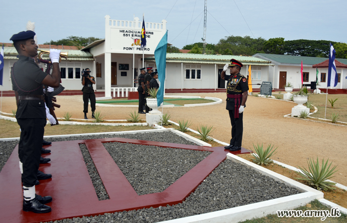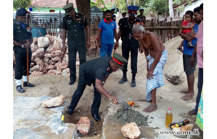 Troops of the 551 Brigade under the 55 Division of the Security Force Headquarters - Jaffna (SFHQ-J) to coincide with their 18th anniversary laid the foundation stone to build a new house for a needy family in Point Pedro.