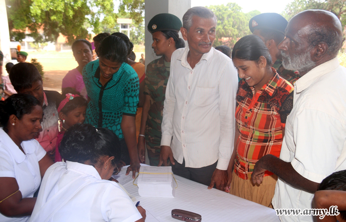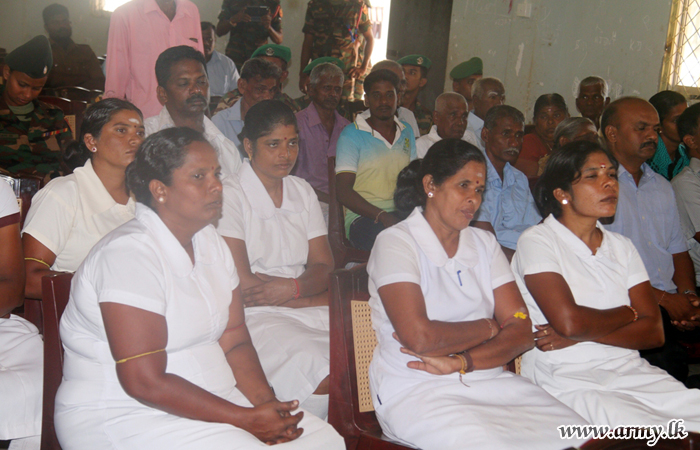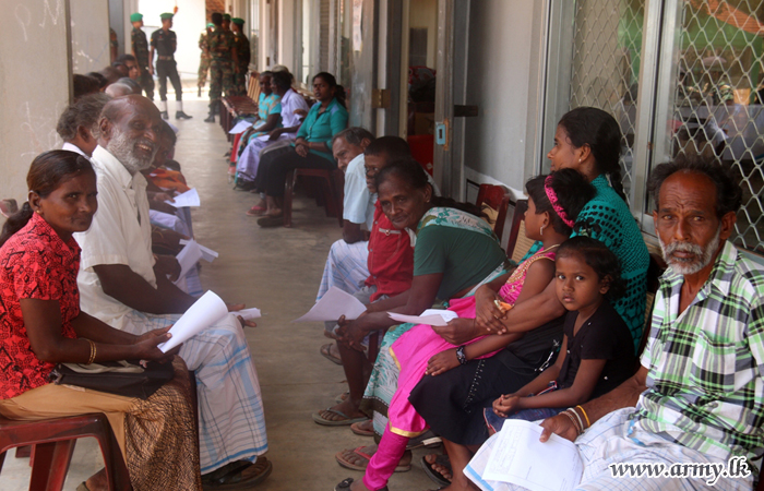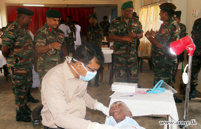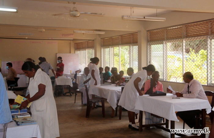 A team of doctors working for the Regional Director of Health Services and Kilinochchi hospital at the invitation of Major General Niyshshanka Ranawana, Commander, Security Forces - Kilinochchi coordinated with 66 Division and 663 Brigade troops and held a mobile medical clinic on Saturday (28) at Jayapuram school to examine civilians for dental caries and Non Communicable Diseases (NCDs).