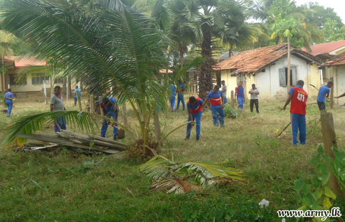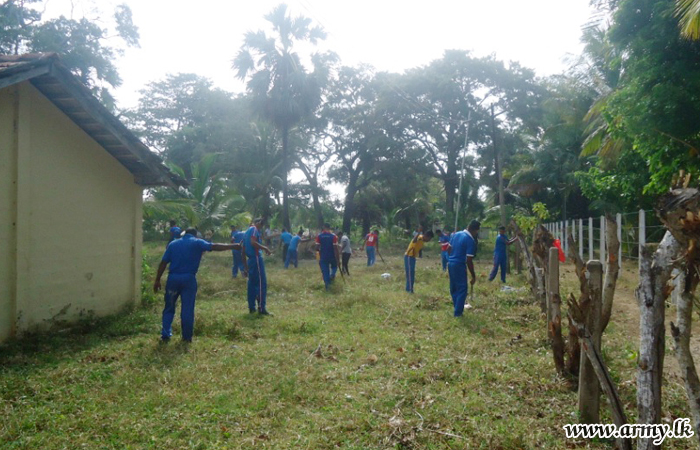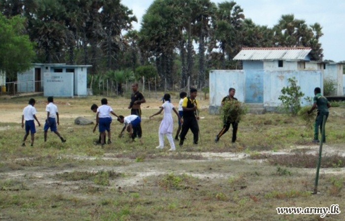 Troops of the 15 (Volunteer) Sri Lanka Sinha Regiment of the 651 Brigade under the 65 Division organized a ‘Shramadana’ campaign at Thevanpiddy Roman Catholic Tamil Mixed School premises in Kilinochchi on Thursday (26) after a request to that effect was made.
