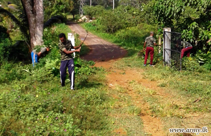 Troops of the 16 (Volunteer) Gemunu Regiment under the 58 Division recently organized a cleaning programme at Galle Panagamuwa Amarasinghe Primary School premises in Wanchawala after a request to that effect was made.