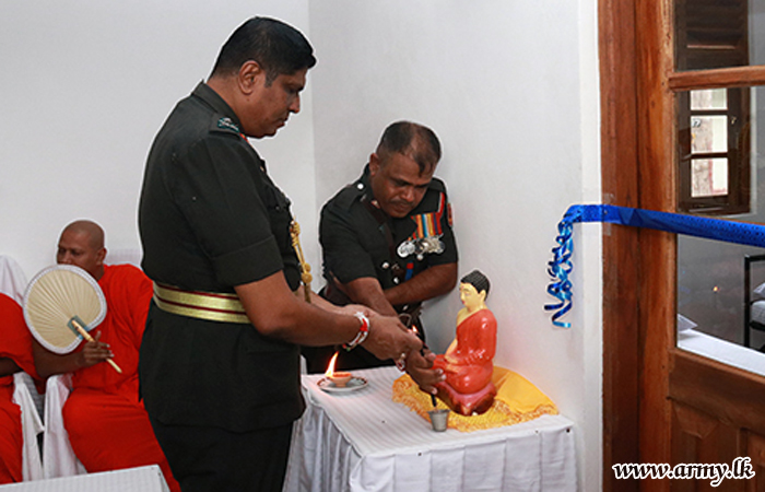 The construction was made a reality with funds, collected through the Regiment, the Army Headquarters and all SLNG members. At the invitation of the incumbent of the SLNG Colonel of the Regiment, Major General Niyshshanka Ranawana, Major General Wickramaratne during whose period the foundation-stone was laid for this construction, graced the event as the Chief Guest.