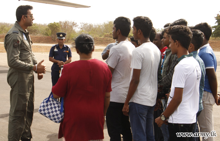 A group of students of Bandaranayake Central College in Veyangoda, together with three parents were facilitated to visit the Palaly Airport on request after they arrived in Jaffna on Tuesday (7).