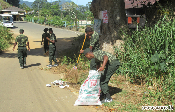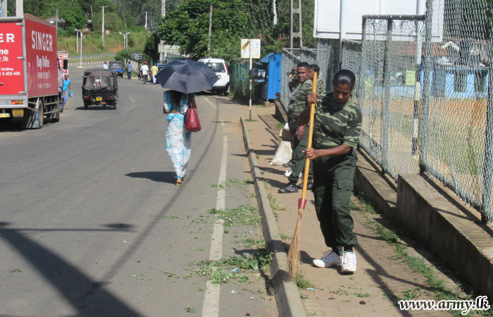 Two Officers and 130 Other Rankers of the SFHQ-Cen attended the project with its under command formations and cleaned the areas, including Diyatalawa town, Haputale and Y junction. |