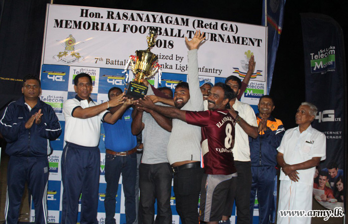 The tournament organized to commemorate late Mr T. Rasanayagam, former Divisional Secretary and the Director at Jayanthinagar Mahadeva Ashram, a reputed personage in Kilinochchi area, was competed by 19 teams who played decisively to secure the championship.