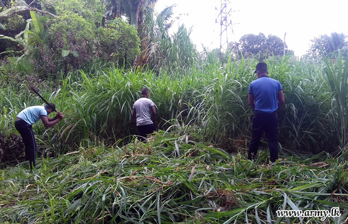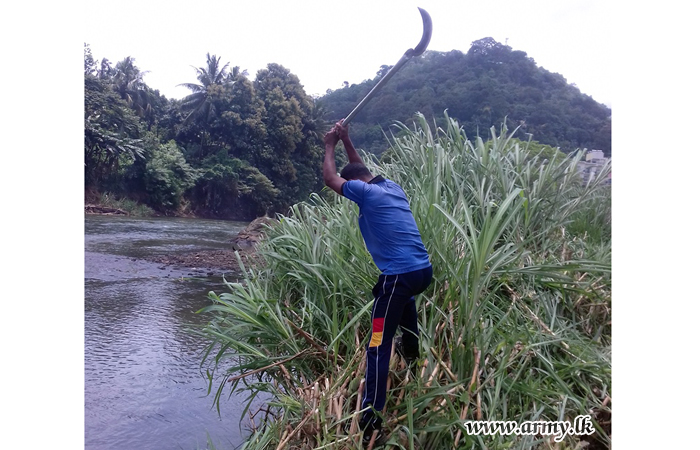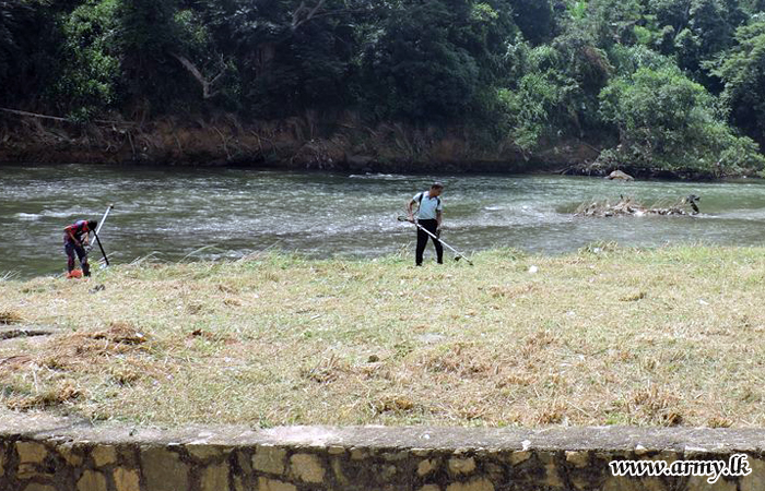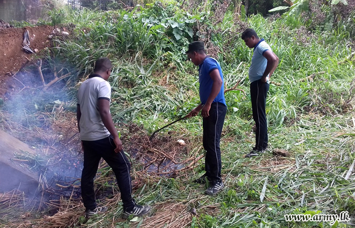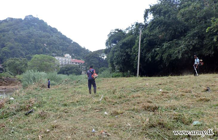 Troops of the Sri Lanka Army Elecrtrical and Mechanical Engineers (SLEME) Training School at Getambe conducted a Sharmadana campaign to clean the Diyakapanathota Viharaya, Getambe in Kandy ahead of the forthcoming Kandy Esela festival.