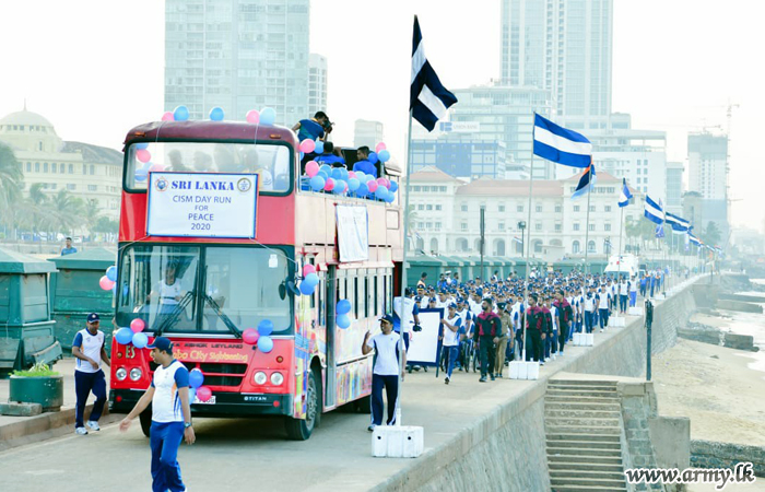 The CISM Day Run was flagged off at the Colombo Lighthouse premises and walked up to the Galle Face roundabout and returned along the same route.