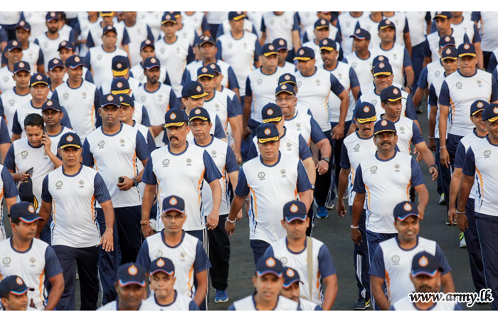 A gathering of a few more than 250 tri-service personnel, headed by the Secretary Defence, Major General (Retd) Kamal Gunaratne, acting Chief of Defence Staff and Commander of the Army, Lieutenant General Shavendra Silva, Navy and Air Force Commanders this morning (18) took part in the globally conducted ‘CISM Day Run’ in Colombo.