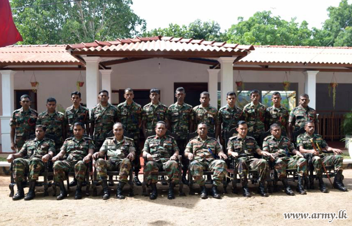 During the same ceremony, 621 Brigade Commander presented a booklet that contains historical information, related to the establishment of this Headquarters at a time LTTE terrorism was fast developing. Before the culmination of the day’s proceedings, the Chief Guest sat for a group photo in front of the new construction for Corporals.