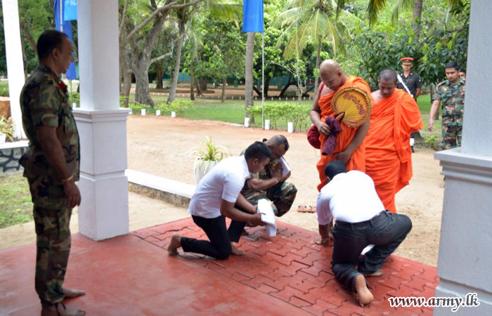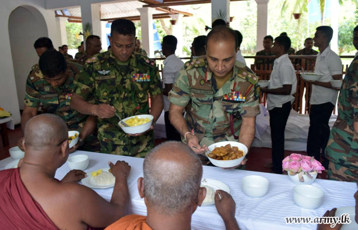 In parallel with the same ceremony, a group of 10 Buddhist monks were invited to the premises for alms the same afternoon. Family members of 621 Brigade Commander, Officers and Other Ranks took part in the religious programme. |