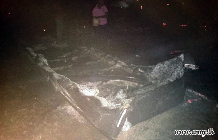 One Officer and twenty Other Ranks of the 593 Brigade of the 59 Division under the Security Force Headquarters, Mullaittivu (SFHQ- MLT) on Monday (13), took immediate steps to extinguish a fire that was spreading fast in a line of fishermen’s huts in the 83 Grama Seva sector near the beach in Chemmalai.