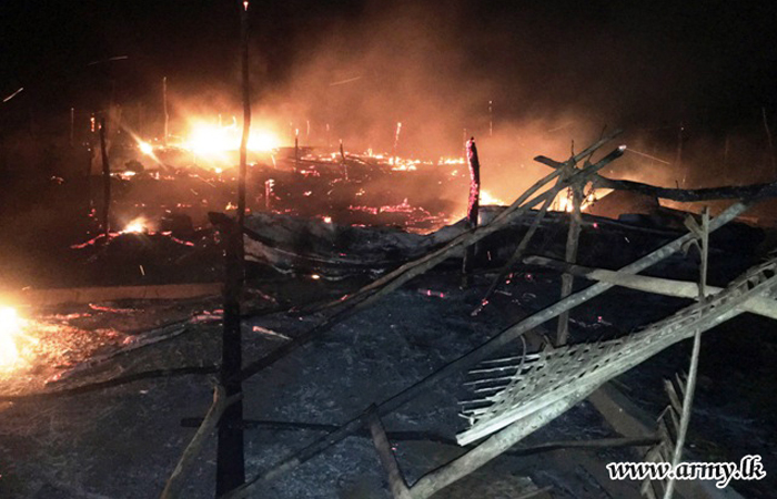 593 Troops Douse Fire in Fishermen’s Huts in Chemmalai