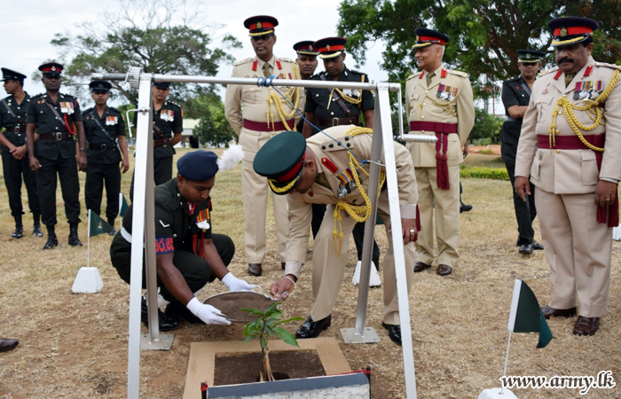 Afterwards, amid religious blessings, he left his signature for an official document and symbolized the acceptance of his new office. Later, he planted a Mango sapling in the premises as a symbol of memory and addressed the troops.