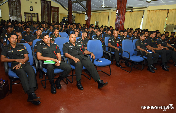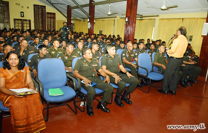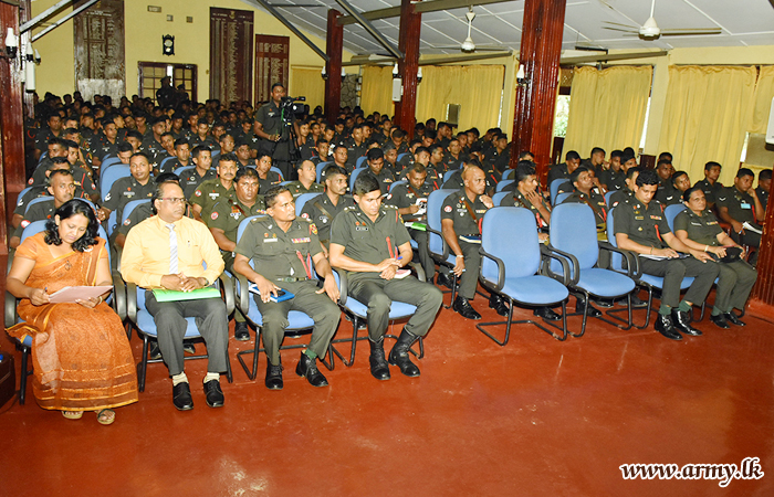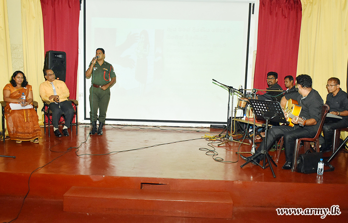 Several resource personnel, Mrs K. G. G Roshshini De Silva and Mr R. M. A Nimalsiri from the Ministry of Women's and Children's Affairs provided lectures to this awareness program with the help of the Sri Lanka Light Infantry Music Band which used vocals and instrumental music for this purpose. |