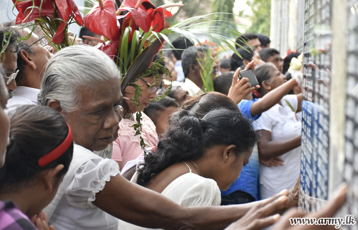 In the afternoon, religious services representing Buddhist, Catholic, Hindu and Islamic faiths got underway at separate sacred places in Warakapola and the ceremony ended with an overnight Pirith chanting ceremony, followed by an alms-giving ceremony on Sunday (19) morning.