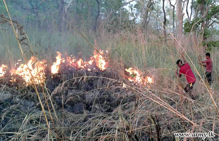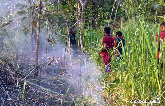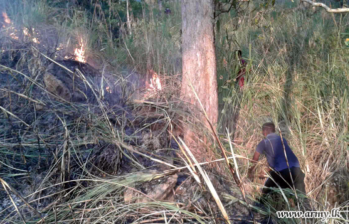 121 Brigade troops of the 12 Division under the Security Force Headquarters - Central (SFHQ-Cen) rose to the occasion a few days ago and doused a bush fire that erupted in the general area of Horombuwa in the Moneragala district on the instructions of Major General Rukmal Dias, Commander, Security Forces – Central (SF-Cen).