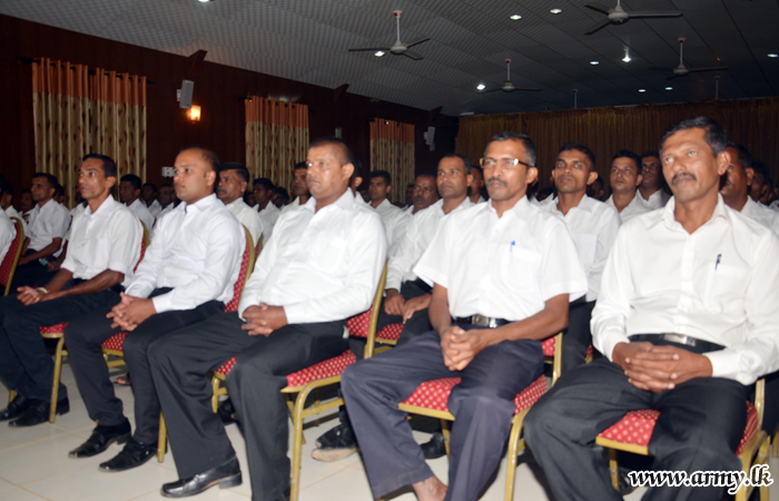 Commander, Security Forces - Mullaittivu (SF-MLT), Major General Dushyantha Rajaguru with a view to educating the civil staffers on duties at the Security Force Headquarters - Mullaittivu (SFHQ-MLT) conducted a lecture at the SFHQ- MLT auditorium.