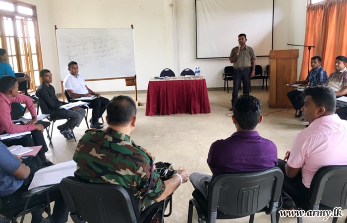 On the instructions of the Commander, Security Forces - Kilinochchi (SF-KLN) Major General Niyshshanka Ranawana, and following the guidance and supervision given by General Officer Commanding, 57 Division, Major General Vijitha Ravipriya, an English course was started for the officers under command to the Security Forces Headquarters - Kilinochchi (SFHQ-KLN) on Friday (17).
