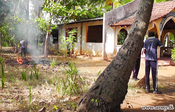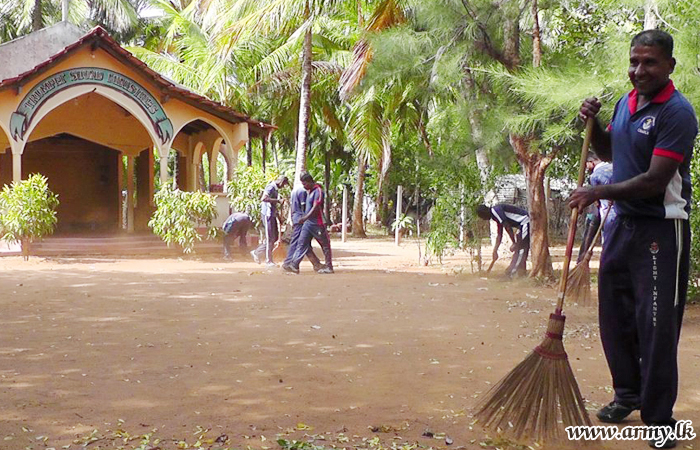Troops of the 21 (V) Sri Lanka Light Infantry Regiment (SLLI) of the 653 Brigade of the 65 Division under the Security Force Headquarters - Kilinochchi (SFHQ-KLN) cleaned up surroundings around Christian Church premises in Yogapuram West during a ‘Shramadana’ on Tuesday (21).