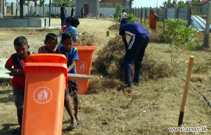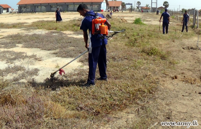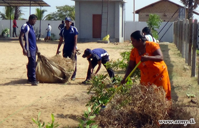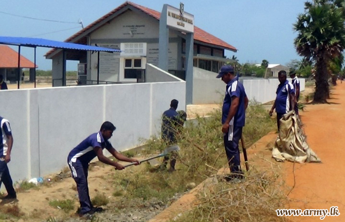 Troops of the 19 (V) Sri Lanka Light Infantry (SLLI) Regiment of the 651 Brigade under the Security Force Headquarters - Kilinochchi (SFHQ – KLN) attended to a ‘Shramadana’ campaign on Wednesday (22) at Thewanpiddi Primary school premises at the request of school authorities.