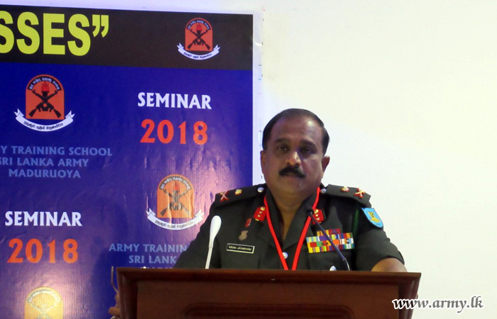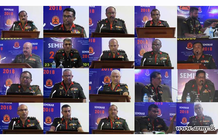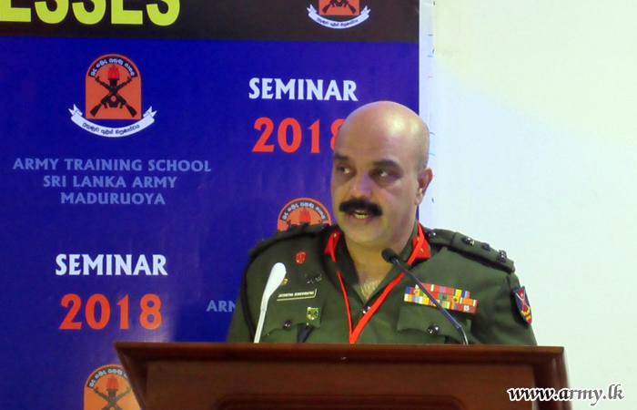 Brigadier Jayantha Seneviratne, the Commandant, together with Staff Officers of the Army Training School organized the seminar aiming to enhance the knowledge of the middle-grade officers of the Sri Lanka Army, Navy, Air Force and Police under the guidance of the Commander of the Army.