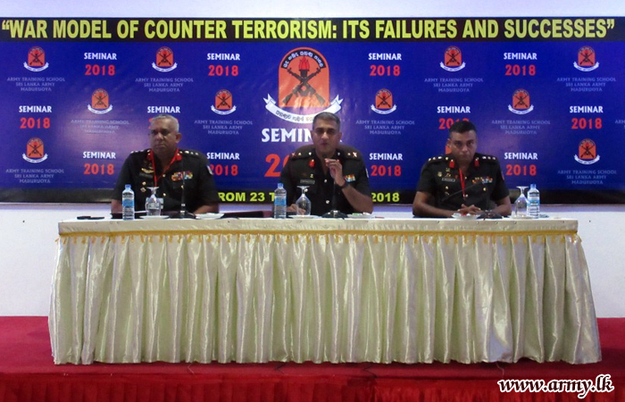 The annual seminar of the Maduruoya Army Training School got underway for the third consecutive time under the theme, ‘War Model of Counter Terrorism: Its Failures and Successes’ on during 23 – 25 August.