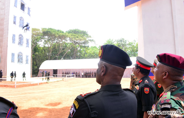Lieutenant General Senanayake spoke to SF and Commando Regiment troops participating in the exhibition and encouraged them before his exit from the venue. |