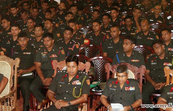 Lectures were delivered by the Medical Officer, Major Dr. Cyril Kulathunga. 100 Officers and 1100 Other Ranks listened to the lecture.