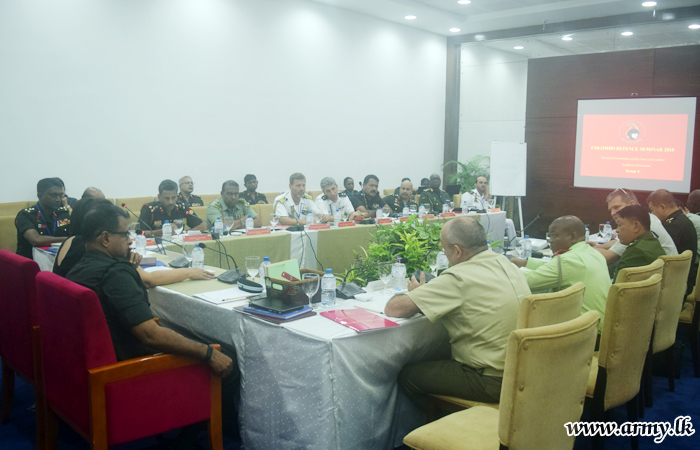 The Preparatory Session for Participants in the Session 2 on Friday (31), chaired by Dr Sarala Fernando, Former Ambassador/Permanent Representative of Sri Lanka to the UN at the ‘Colombo Defence Seminar - 2018’ underGroups A, B, C, D as the Sessions are nearing completion, invited each Group to produce their findings, separately themed on ‘Diaspora Communities amidst Peace and Conflict’ (Group A), ‘Technological Creativity: Challenges to Armed Forces’ (Group B), ‘Climate Change: Future of Warfare’ (Group C) and ‘Leadership in Mitigating Violent Extremism’ (Group D).