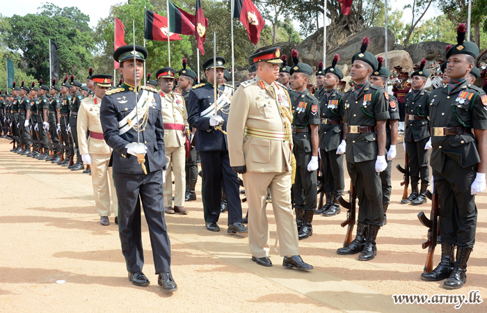 The proceedings began as the day's protagonist, MIR Colonel of the Regiment entered the premises to be saluted at a Guard Turnout in his honour. Brigadier Sumith Atapattu with senior Council members warmly welcomed the outgoing Colonel of the Regiment at the parade ground before he was invited to the parade ground.