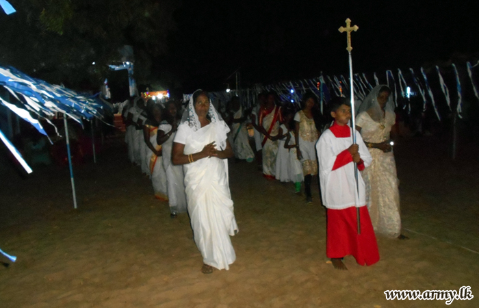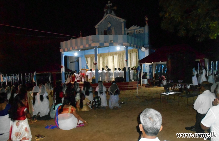Ahead of the Church feast at Webamaalai Church in the Mullivaikkal (West) Grama Niladhari Division, 14 Vijayabhahu Infantry Regiment (VIR) troops under command to the 681 Brigade of the 68 Division cleaned the area and afterwards provided all possible assistance during (25-26 August) for conduct of the annual feast .