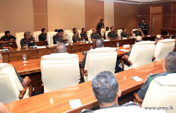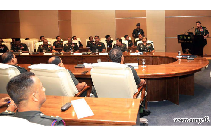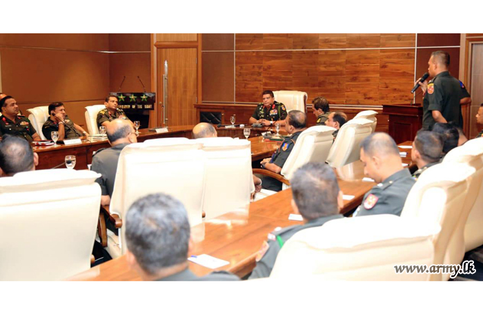 A representative batch of undergraduates following the Unit Commanders’ Course (UCC) at Buttala Officer Career Development Centre (OCDC) this morning (6) as part of their training curriculum had the rare privilege of interacting with the Chief of Defence Staff and Commander of the Army, Lieutenant General Shavendra Silva and Principal Staff Officers (PSOs) at the Army Headquarters in order to acquire a better exposure and understanding on operational aspects of the country’s biggest organization.