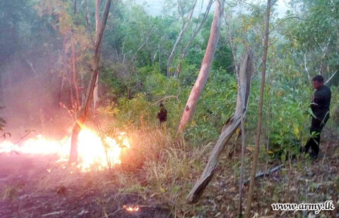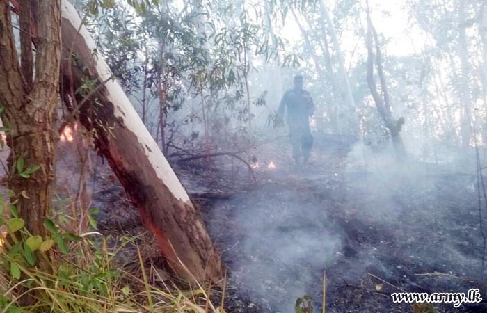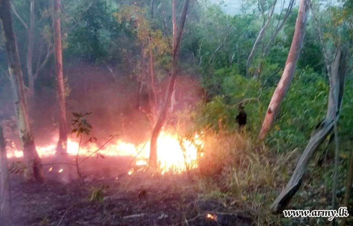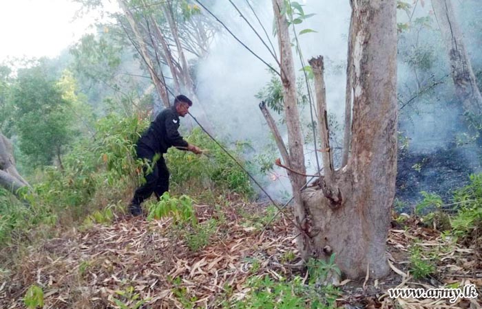 122 Brigade troops of the Security Force Headquarters - Central (SFHQ-Cen) a few days ago doused a bushfire that erupted in the general area of Gonadeniya forest reserve in Weeraketiya in the Hambantota District.