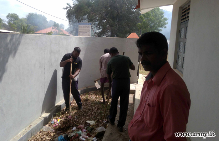 Under the directions of the General Officer Commanding (GOC), 61 Division Brigadier K.D.C.J Thilakaratne and under the supervision of the Commander, 613 Brigade, troops conducted a Dengue prevention programme at the Thachchanamaradamadu Tamil Mixed School in the Madhu educational zone, Mannar before commencement of the third school term on Sunday (2) .