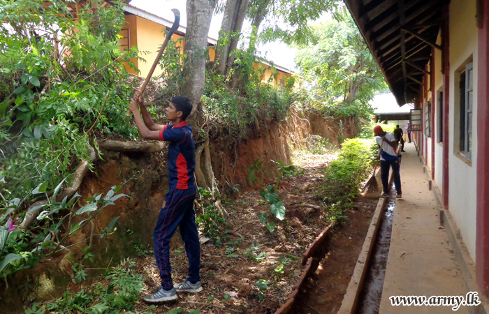 Central & Kilinochchi Troops Clean up School Compounds before Re-opening