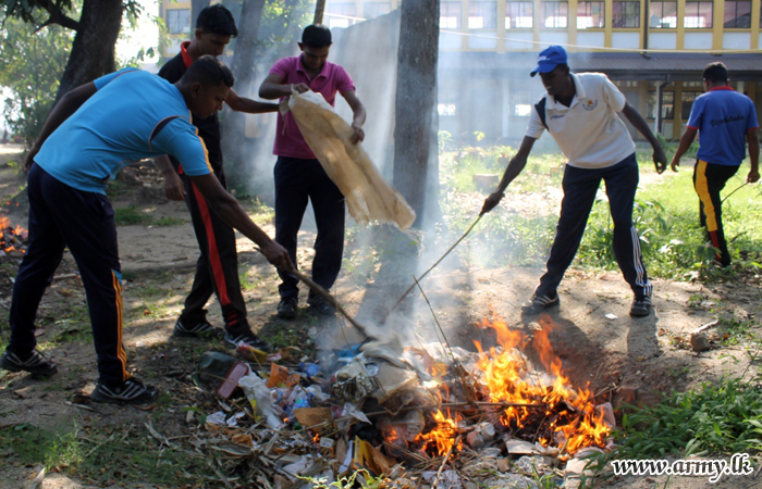 Security Force Headquarters - Central (SFHQ-Cen) on the instructions of its Commander Major General Rukmal Dias, Commander, Security Forces - Central, launched extensive cleaning programmes in the schools under its areas of responsibility during 1 - 2 September. The programmes were largely, meant to eradicate Dengue epidemic that would find breeding grounds in the schools. More than 300 all ranks participated in the programmes.